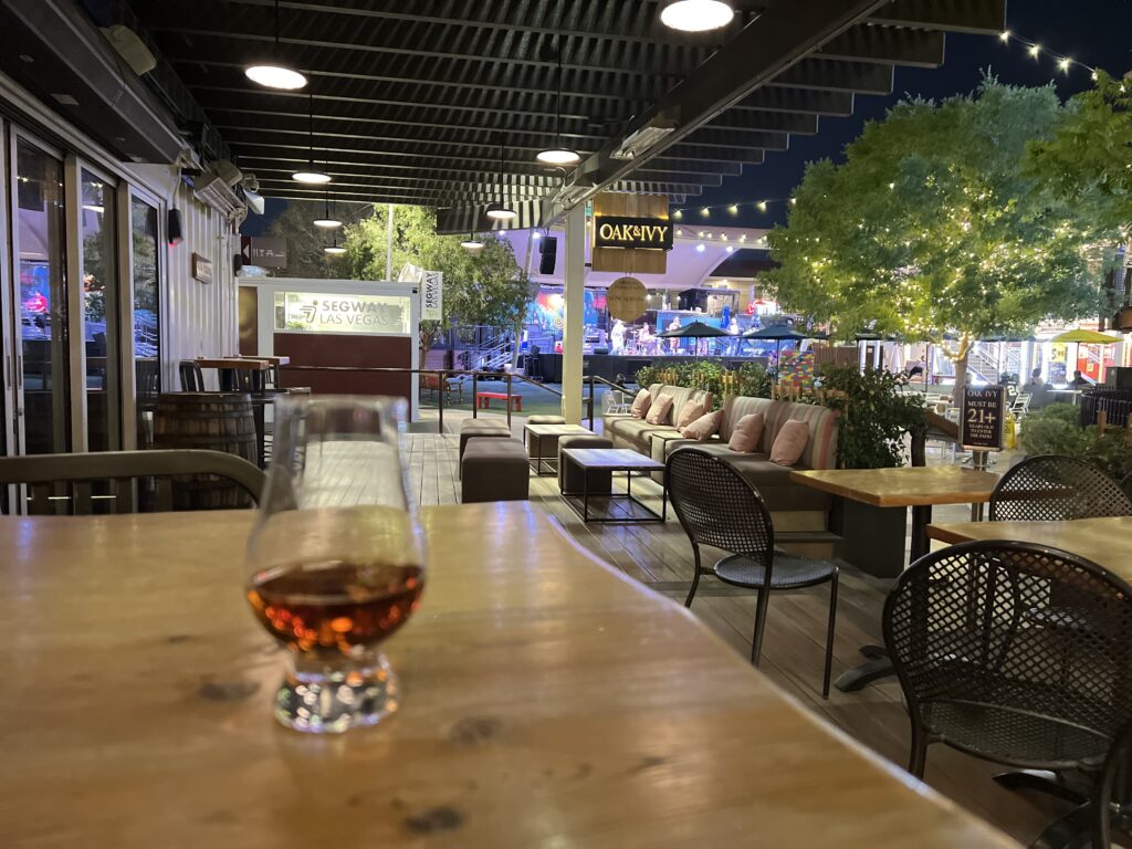 Vegas is no stranger to whiskey. Pappy and Weller flow like water at the well-stocked VIP bars for high-rollers on the strip. However, one of Vegas’ best whiskey bars is not in the Bellagio, the Venetian, or the MGM Grand. Its in downtown Vegas. Old School Vegas…with a twist. Located in the uber- (lower case “u”) cool Container Park — an eating and shopping complex build out of shipping containers, with a stage for live music and events — Oak & Ivey is an unpretentious venue with a relaxed and inviting vibe.